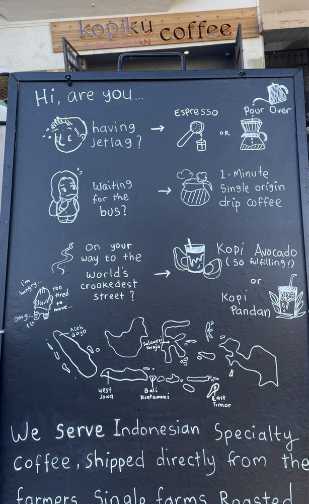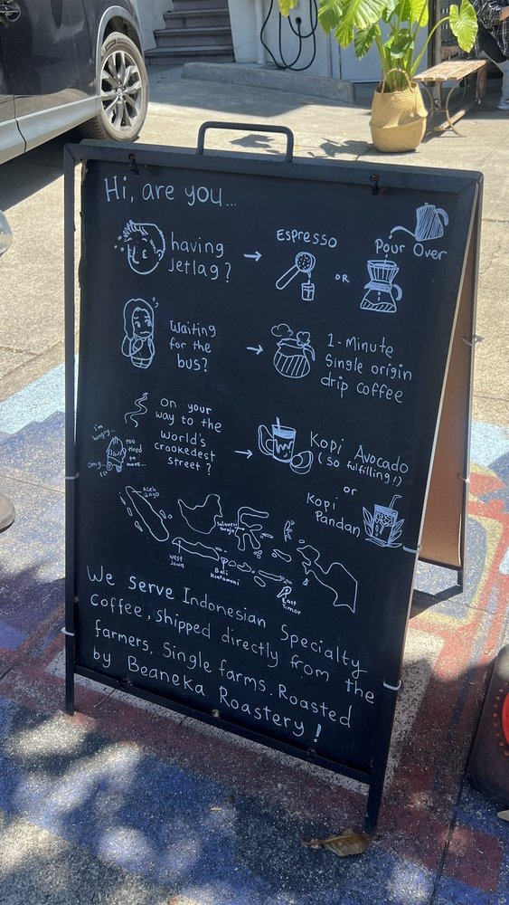 Introducing Kopiku Coffee, a hidden gem in San Francisco's Marina District, known for its unique Indonesian-inspired coffee creations. The welcoming and cozy space offers a distinctive coffee experience, showcasing traditional brewing methods and rich flavors. Customers rave about the top sellers like Kopi Pandan (pandan latte) and Pandan Matcha, highlighting the blend of exotic flavors that tantalize the taste buds. The owner’s passion for coffee is evident in the exceptional pour-over coffee and housemade pandan syrup that elevates each sip. Though the seating is limited, the focus on quality and freshness in their coffee beans and niche products make Kopiku Coffee a must-visit for coffee enthusiasts looking for something new and exciting in the bustling coffee scene of San Francisco.